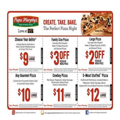 Source : coupons.usatoday.com$3 OFF Family Size Pizza, Papa Murphy’s DeForest, Litchfield, MN